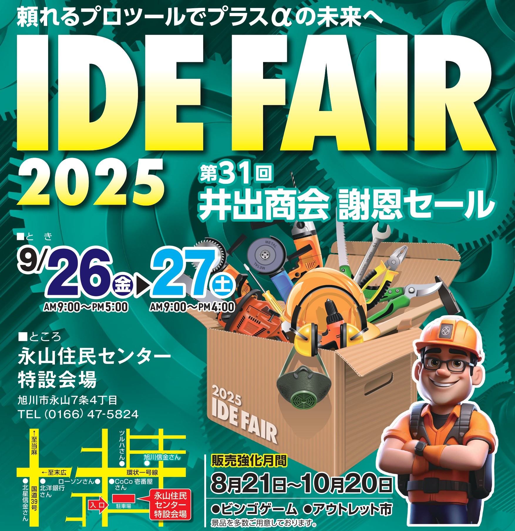 弊社主催の展示会「IDE FAIR」の開催日時が、2025年9月26日(金)・27日(土)に決定しました! 出展メーカー等はお知らせページのチラシ上で掲載しております。